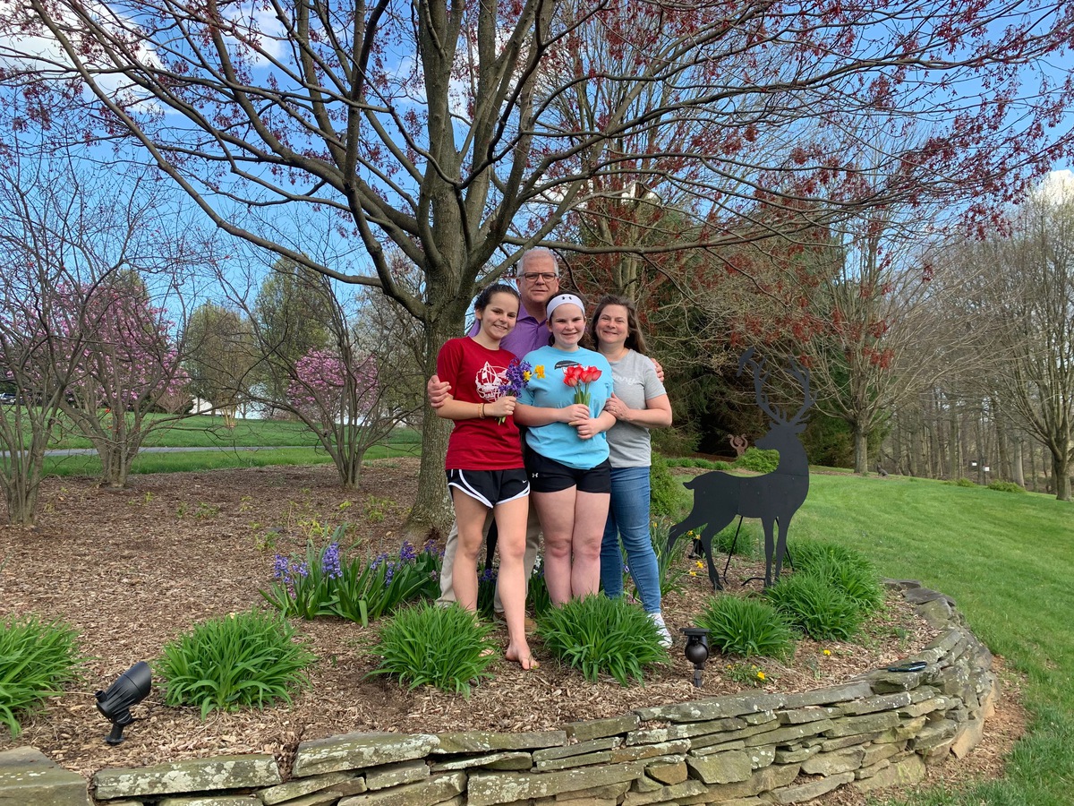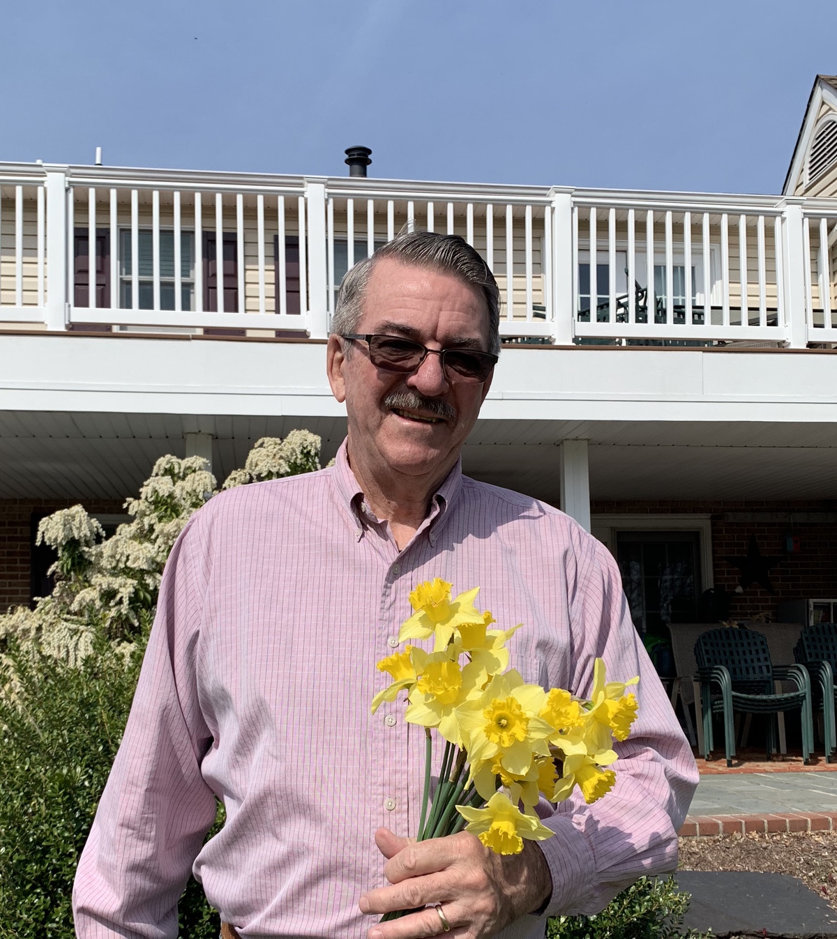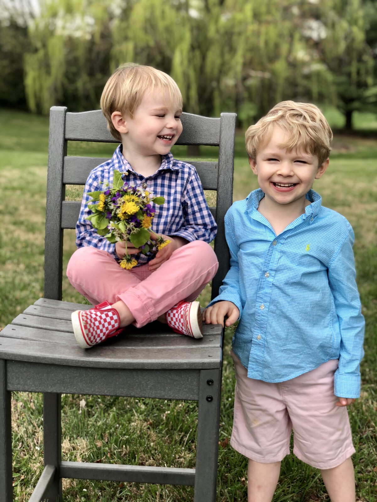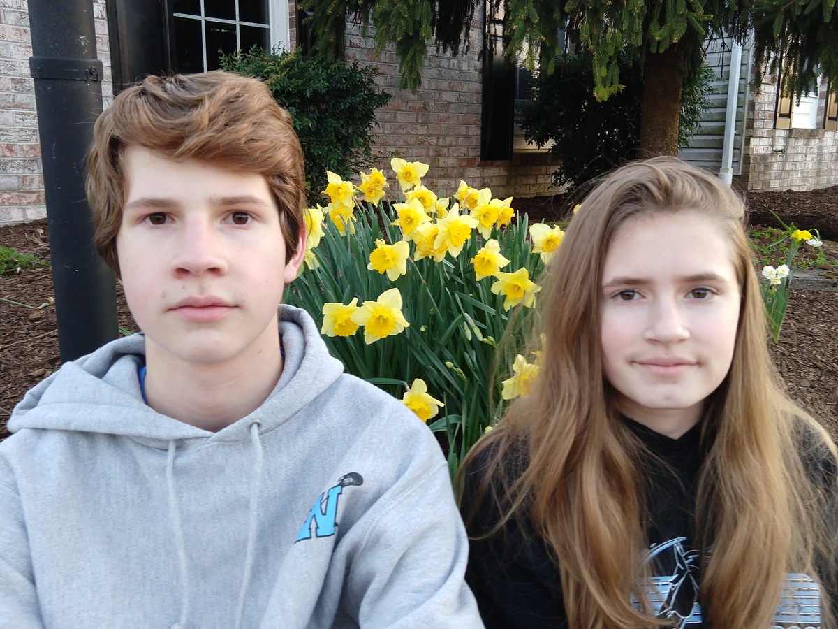 Pictures of folks holding spring flowers for Easter.