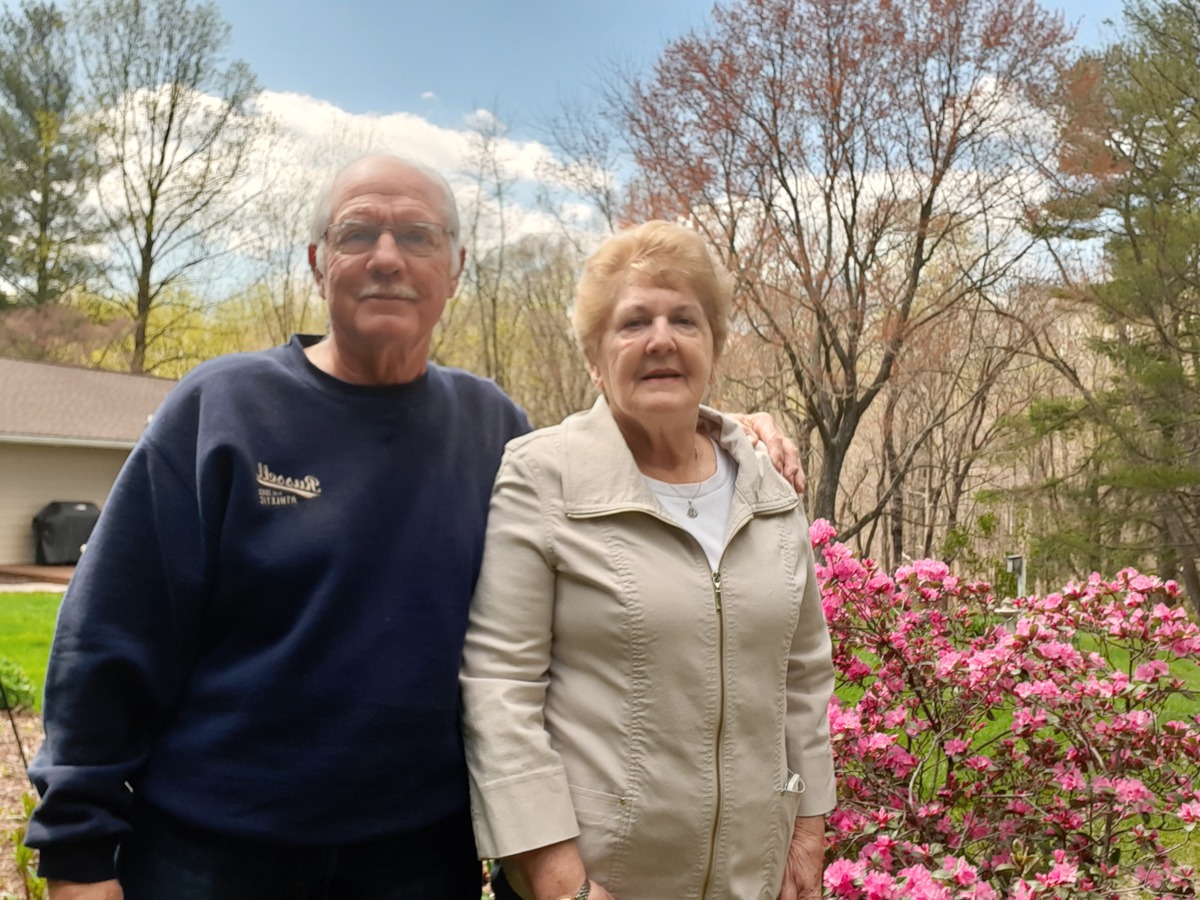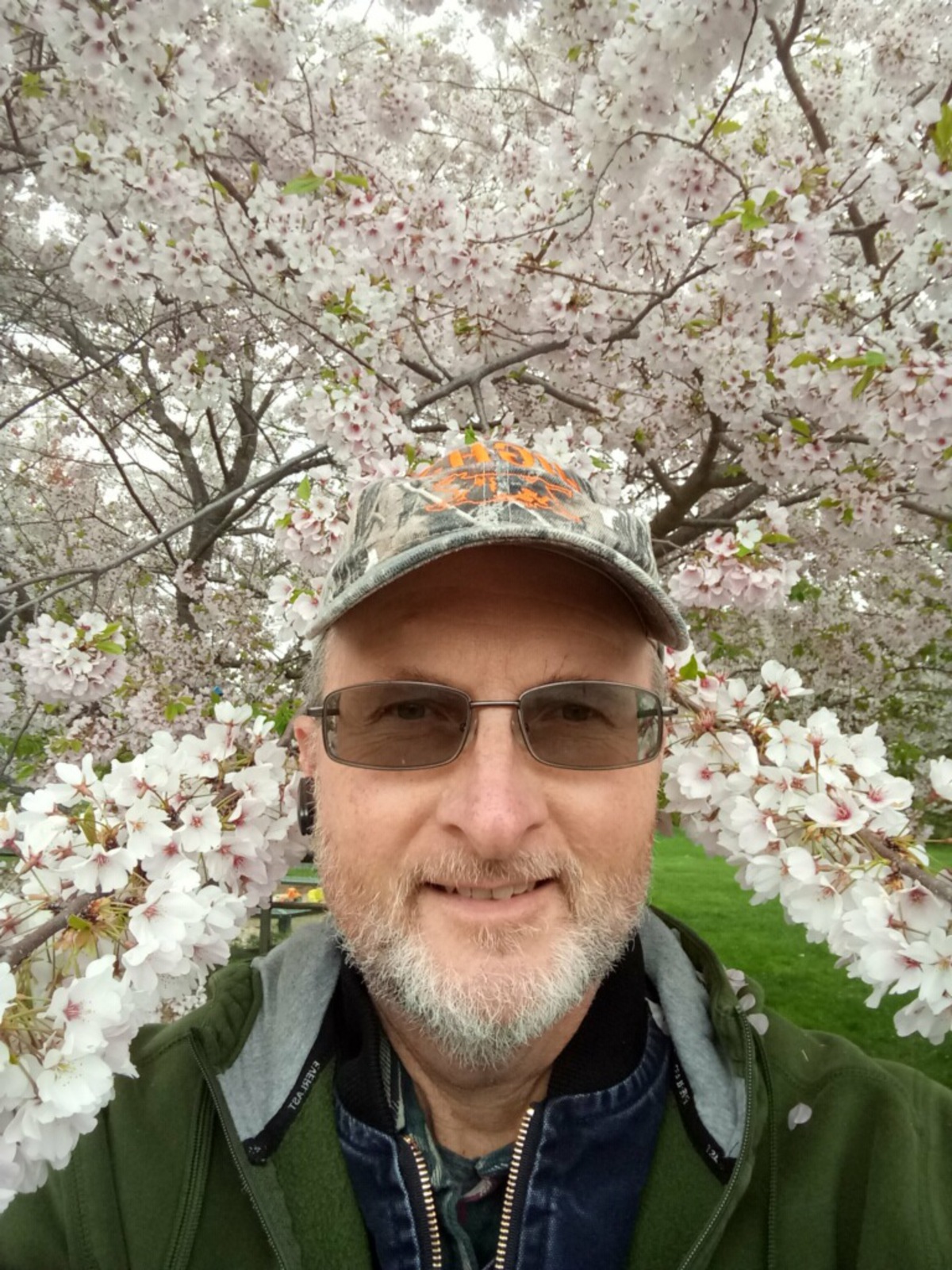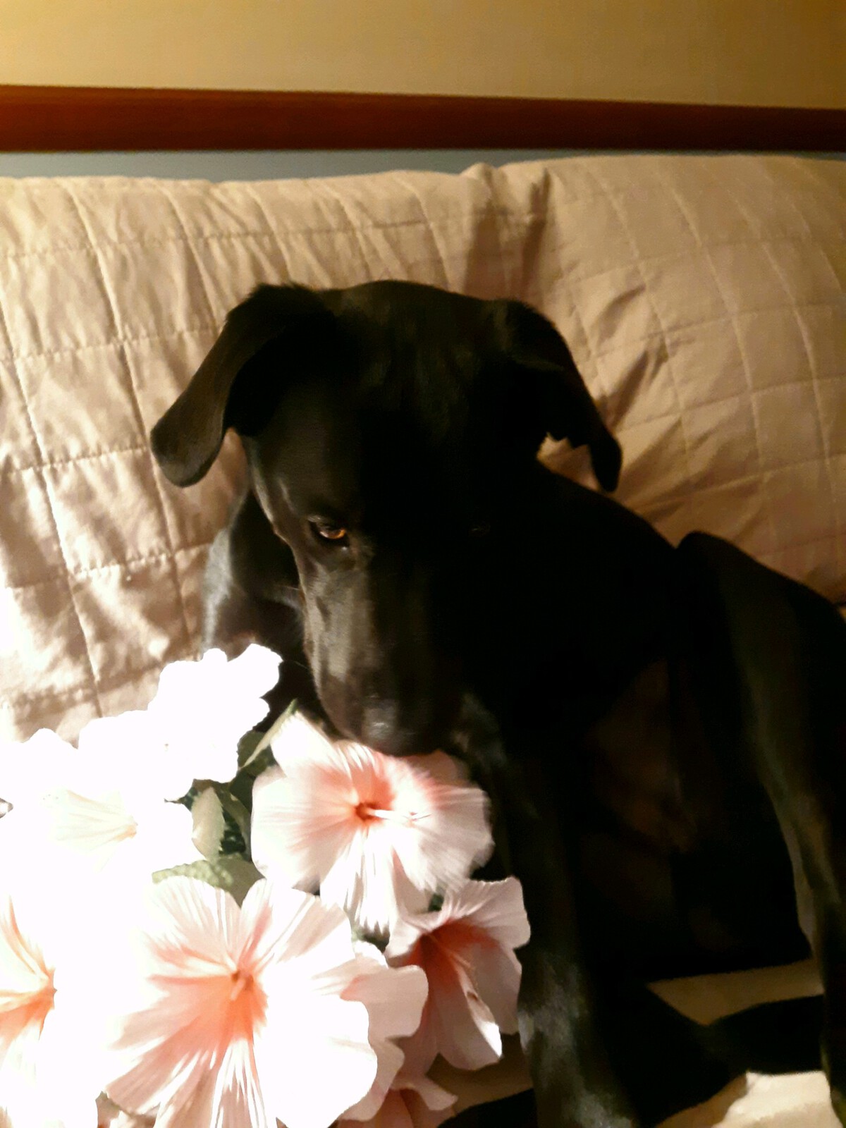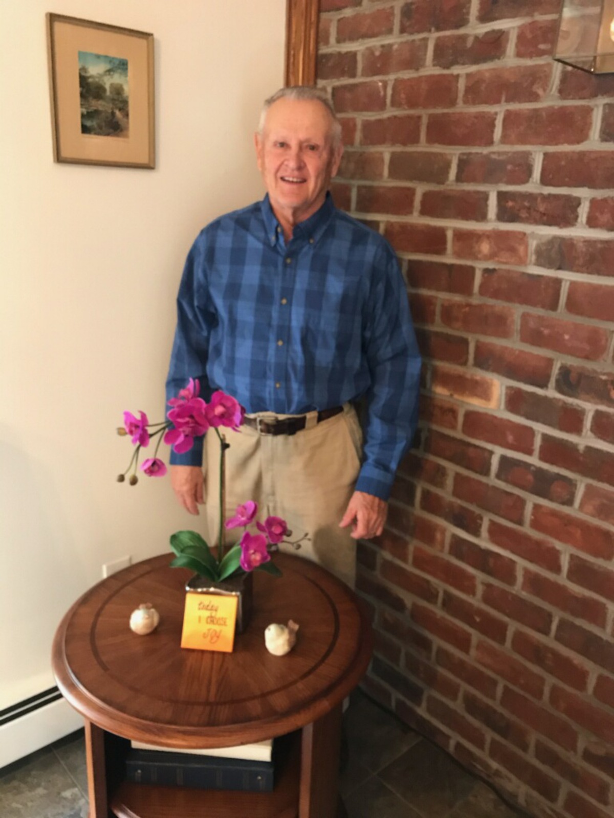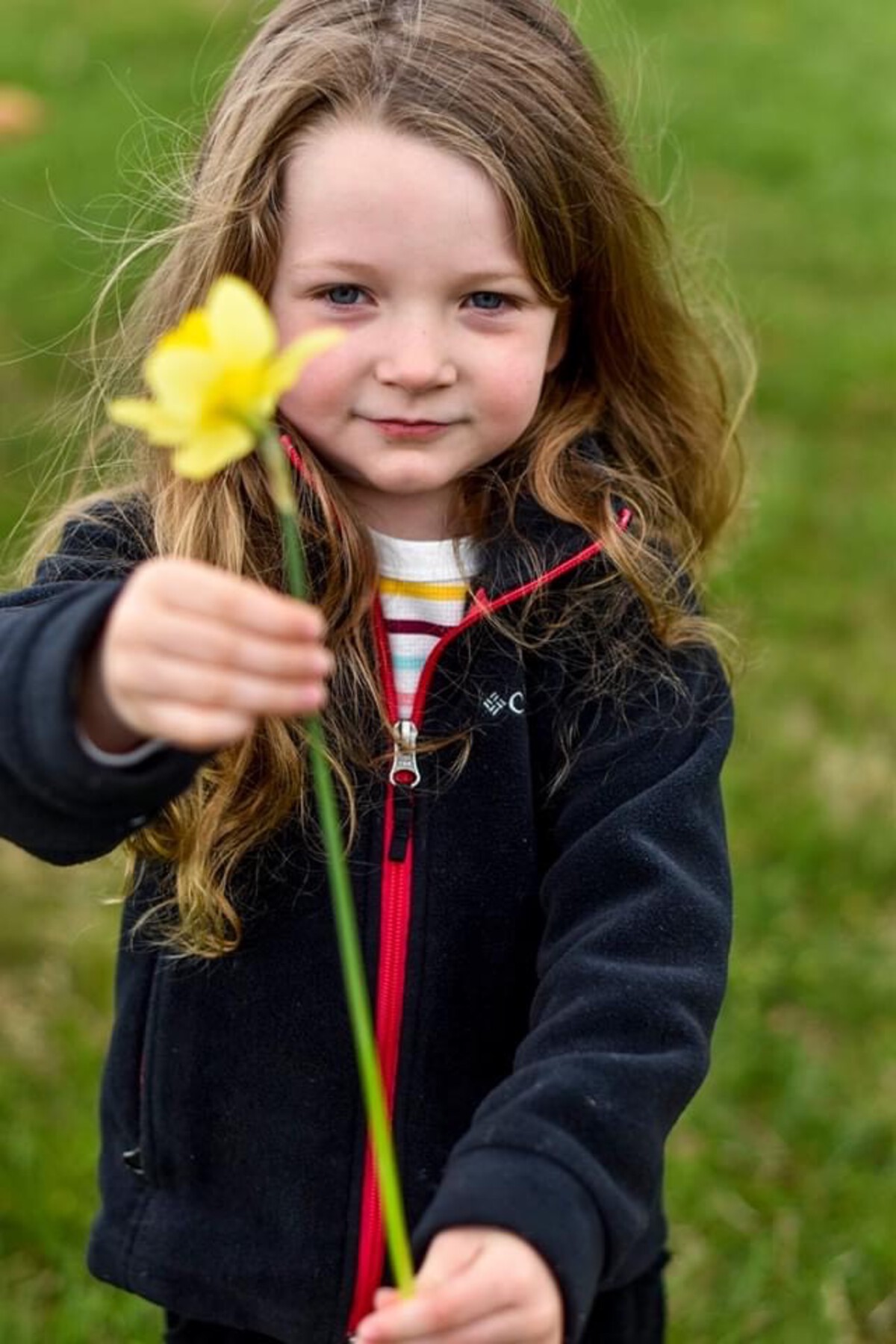 Pictures of folks holding spring flowers for Easter.